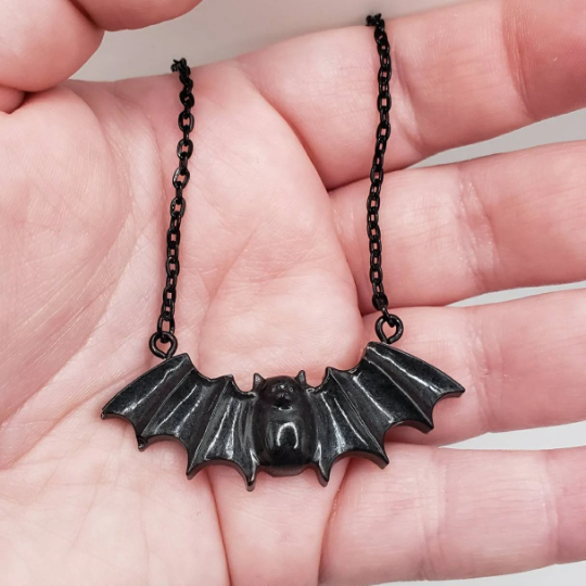 Black Bat Necklace Resin