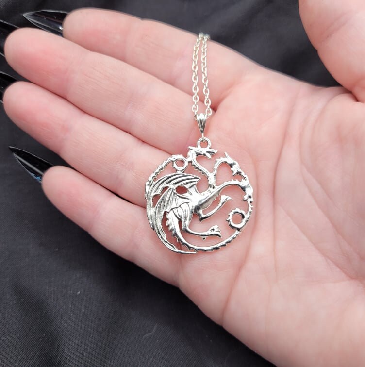 Silver Fantasy Myth Three-Headed Dragon Hydra Necklace