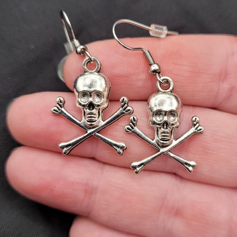 Silver Skull and Crossbones Pirate RPG Charm Earrings
