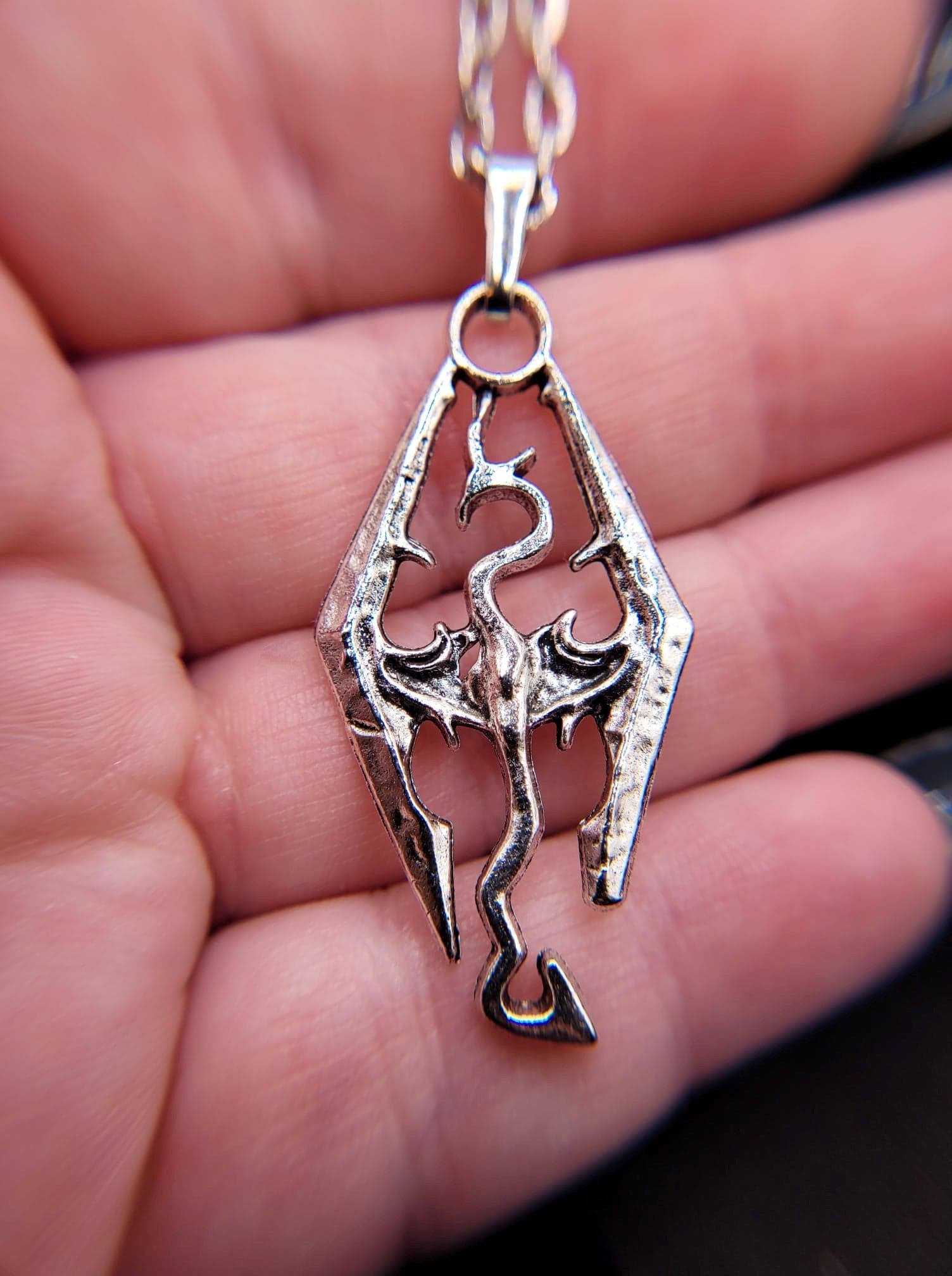 The Elder Scrolls TES V Silver Skyrim Charm Dragon Dragonborn Dovahkiin Necklace